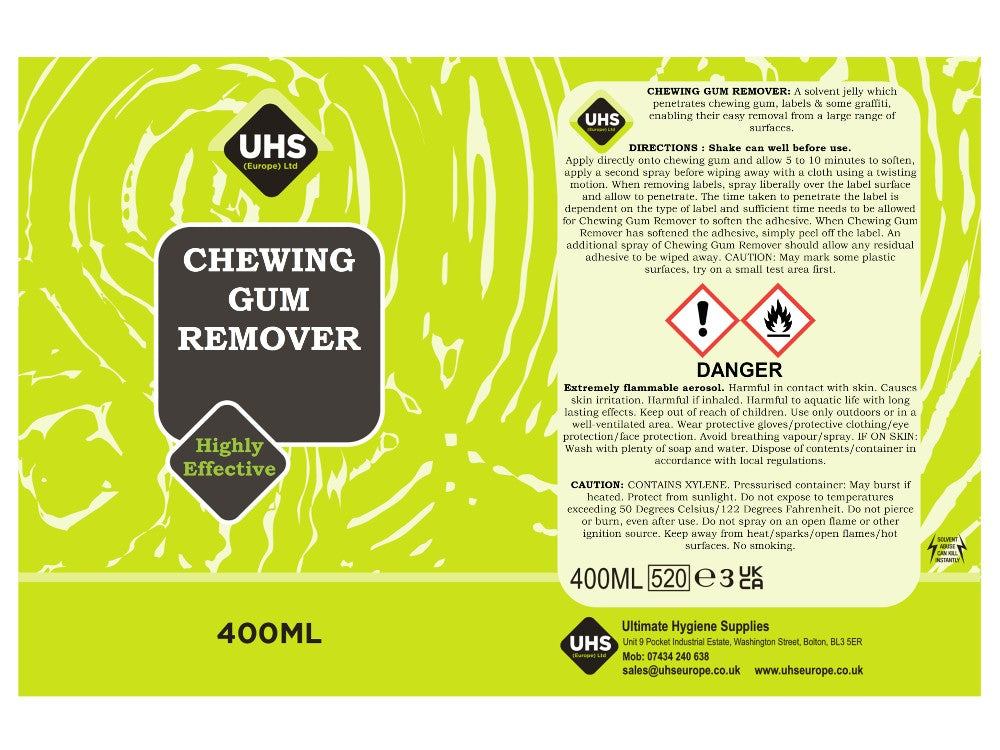 A solvent jelly which penetrates chewing gum, labels & some graffiti, enabling their easy removal from a large range of surfaces.