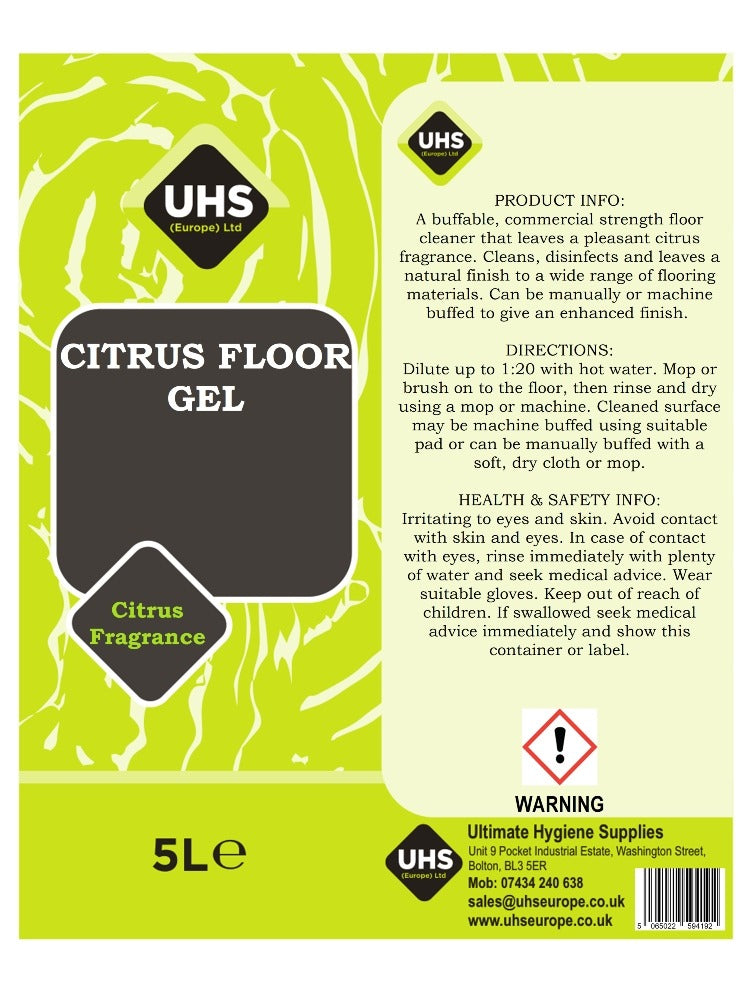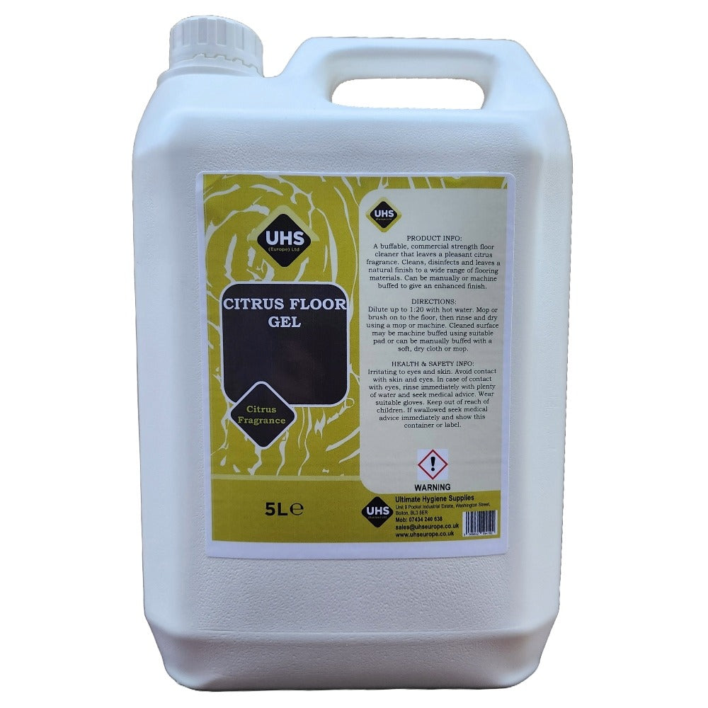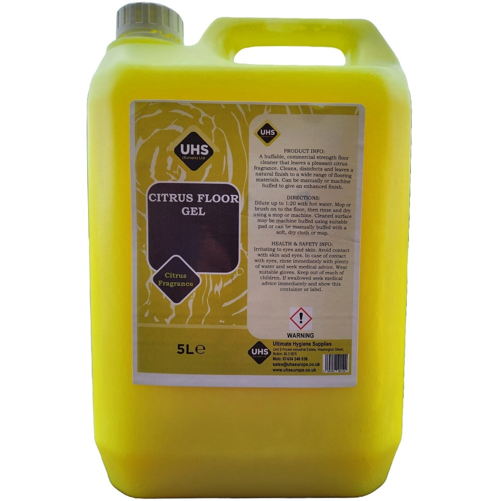 A buffable, commercial strength floor cleaner that leaves a pleasant citrus fragrance. Citrus Floor Gel will clean, disinfect and leave a natural finish to a range of flooring and can be machine or manually buffed to give an enhanced finish.