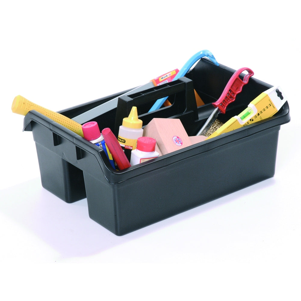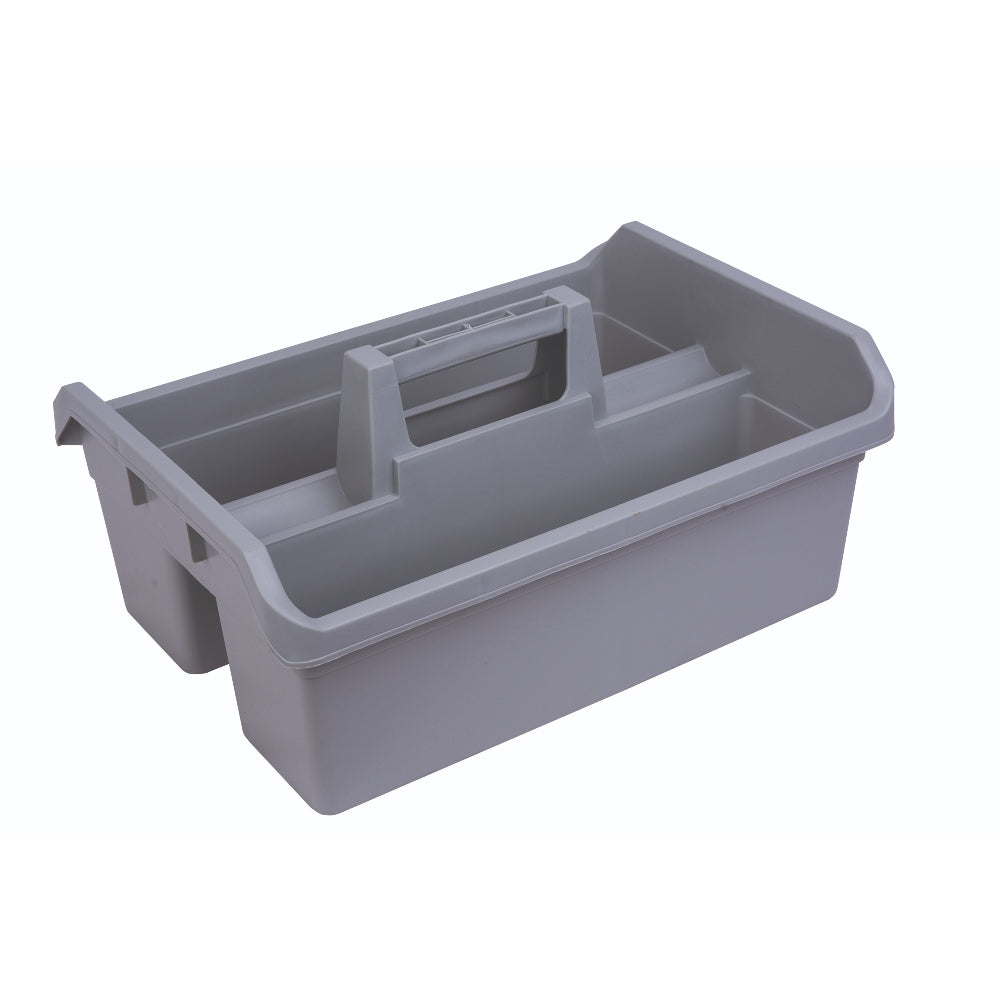 An everyday essential carrier with strong grip handle and convenient multi-section compartments for tools, bottles and cloths.