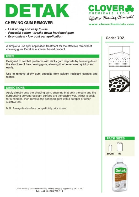 Clover Chemicals Detak Chewing Gum Remover (702)