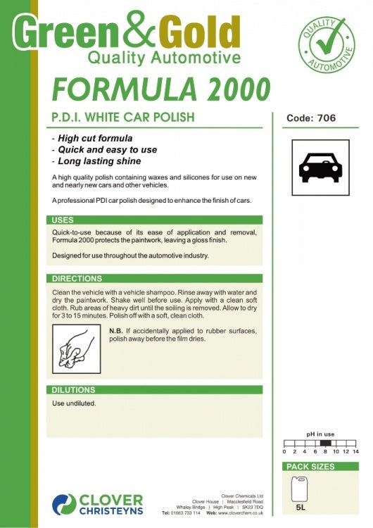 Quick-to-use, Formula 2000 protects the paintwork, leaving a gloss finish.