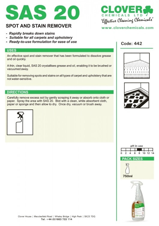 Clover Chemicals SAS 20 - Spot and Stain Remover (442)