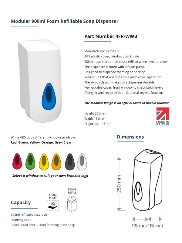 Dexter Brightwell Modular 900ml Liquid Foam Spray Refillable Soap Dispenser