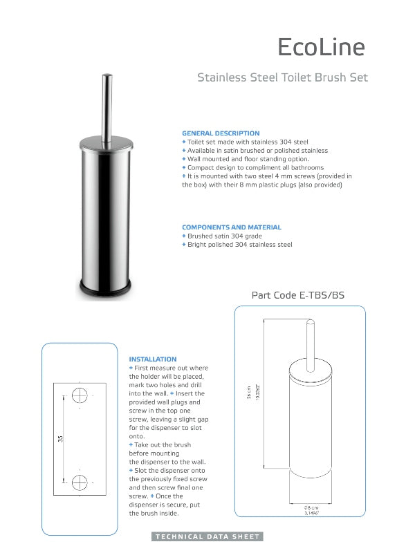 Ecoline Brushed Stainless Toilet Brush Set