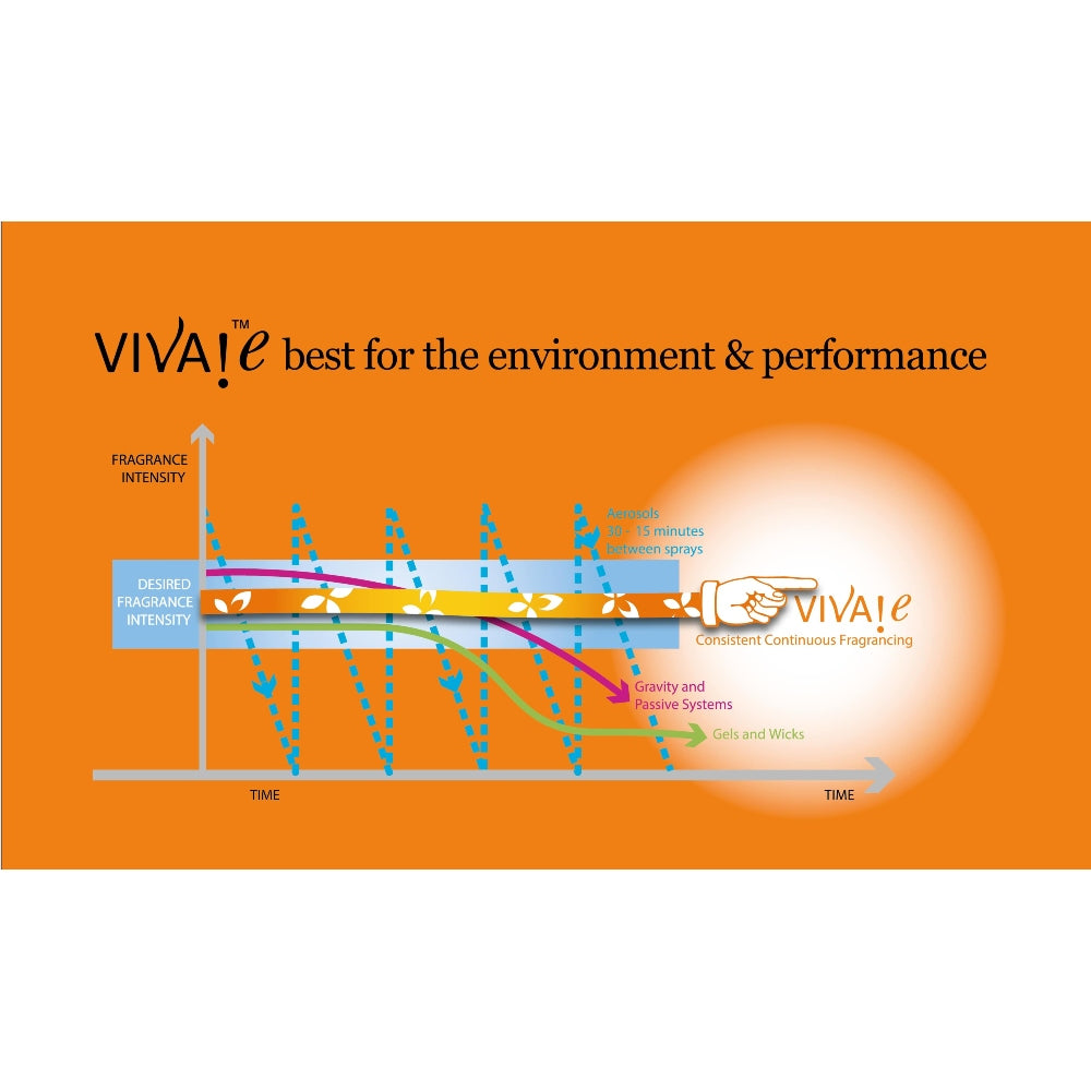 Viva! E is designed and engineered to deliver consistent and continuous levels of fragrance and odour control for the full 60 days life of each refill (sold separately). The multi patented medical-grade oxy-gen technology ensures precise doses of intense scent with no variation on delivery or drying out. Operates on 2 x AA alkaline batteries (not supplied) that last for up to two years.
