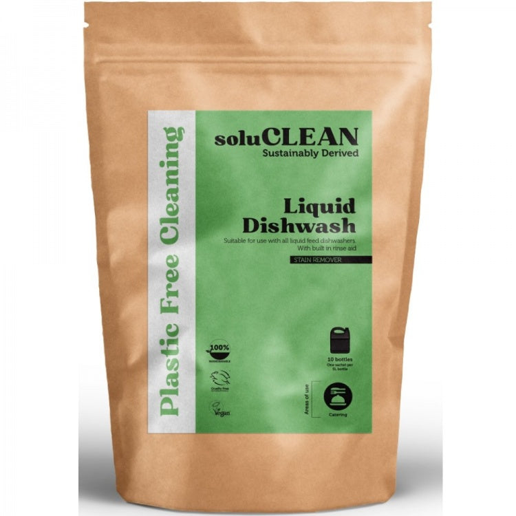 The soluCLEAN Liquid Dish Wash is a revolutionary liquid dishwash replacement, performing all the multiple functions of water softening, stain removal, cleaning and eliminates the need for additional salt and rinse-aid.