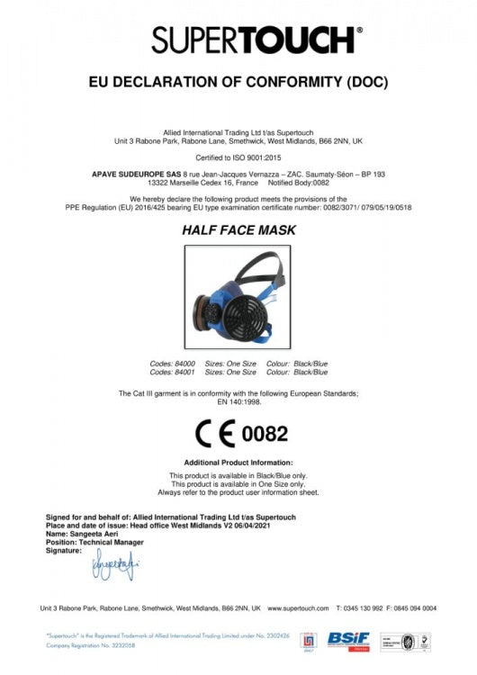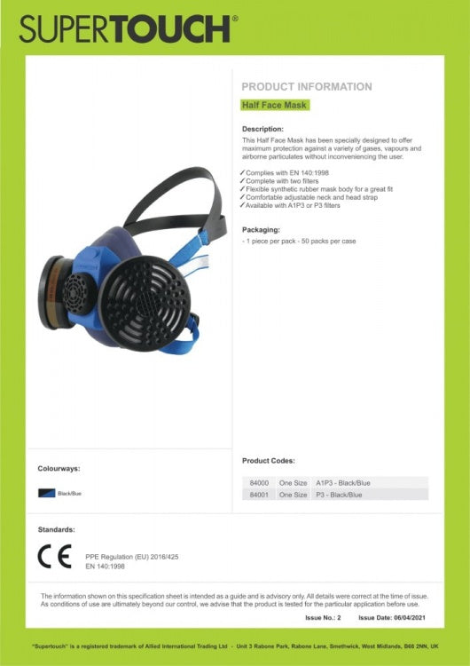 This Half Face Mask has been specially designed to offer maximum protection against a variety of gases, vapours and airborne particulates without inconveniencing the user.