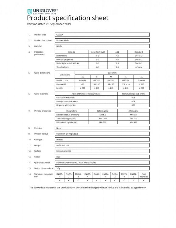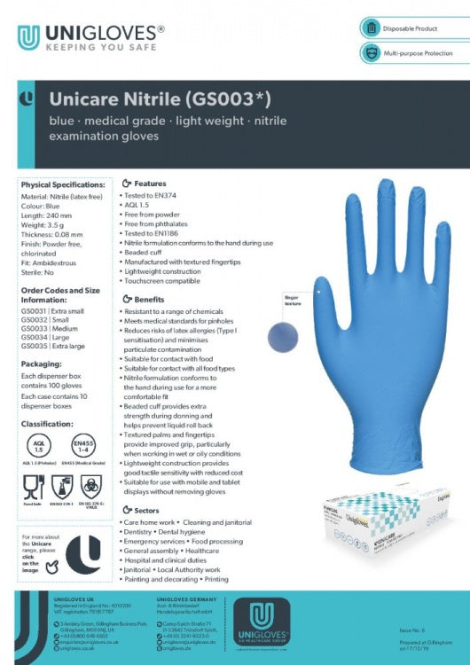 Unicare gloves offer enhanced barrier protection with a beaded cuff and a raised finger-tip grip pattern for superior grip. A grip that works for glove users improves their performance and increases workforce motivation in terms of correct glove usage, improving their safety and your compliance.