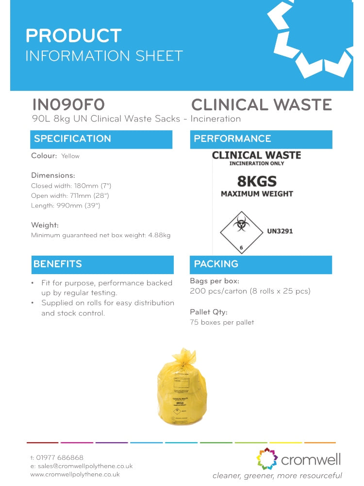 Yellow Medium Duty Clinical Waste Sacks 90 Ltr 8 Kgs (25)
